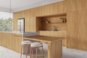 Carvalho Angra bebe das angras da Mata Atlântica, territórios de transição onde mar e floresta coexistem em equilíbrio. Suas catedrais de ritmo suave evocam contornos naturais e contínuos, criando uma leitura serena da madeira. Claro e delicado, revela nuances sutis de cor e movimento, trazendo leveza aos ambientes.